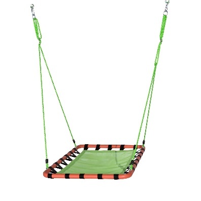 Balancelle idéale pour lire en se balancant, ou tout simplement pour se reposer.Tapis volant pour portique - Agrès qui permet à l'enfant de se reposer ou de lire tout en profitant de son portique - Pensez à équiper le sol de votre terrasse ou de votre jardin de dalles amortissantes afin de sécuriser votre espace de jeux. Vendues sur le site. Dimensions (cm) : 102x76.