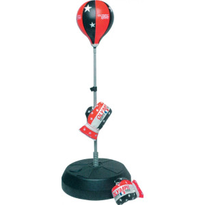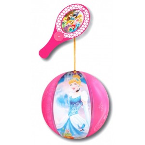 1 balle gonflable reliée par un élastique à une raquette en plastique - Dès 18 mois.