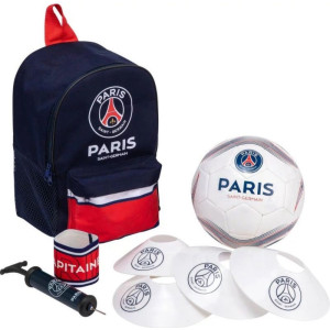 Kit de football olympique de Marseille composé essentiellement de 1 ballon de football en PVC taille 5 (livré à plat), 1 mini pompe de gonflage avec embout, 4 plots de marquage au sol pour faire 2 buts ou faire des slaloms d'entraînement et 1 brassard de capitaine - Convient pour donner le sourire aux petits amateurs de football - Fourni avec un sac à dos mesurant 28,5 cm de long, 18 cm de large et 18 cm de haut et pouvant contenir tous les accessoires du kit - Idéal pour offrir en cadeau à un enfant de 7 ans ou plus, fan de l’Olympique de Marseille - Diamètre du ballon gonflé : 21 cm.