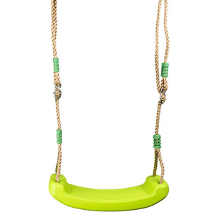 Siège bébé TRIGANO pour portique jusqu'à 20 kilos - Sa forme et sa ceinture permettent à bébé d'être en sécurité - Coque plastique verte + barre centrale orange - Cordes coloris chanvre réglables en hauteur - Âge recommandé : 9 à 36 mois.