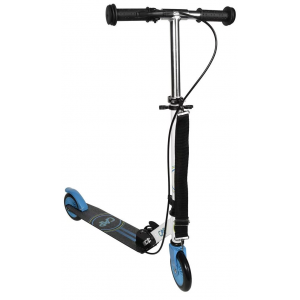 Trottinette pliable de couleur bleue fabriquée avec une structure en acier de haute qualité - Présente des poignées pliables et rétractables en plastique souple - Mensurations de la trottinette : 66 cm de long, 32 cm de large et 81 cm de haut - Peut supporter une charge maximale de 20 kg - Intègre un guidon T-bar réglable sur 3 niveaux (de 71 à 81 cm) - Embarque un frein sur la roue arrière - Monté sur 2 roues de 121 mm de diamètre conçues en PVC - Fabriquée avec un plateau recouvert d’un grip antidérapant - Convient pour les enfants de 4 ans et plus - Taille minimale /maximale requise : 0 ;95 mètre / 1.20 mètre.
