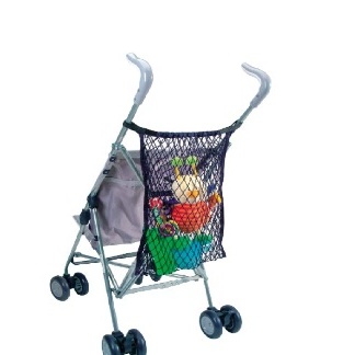 Filet pour poussette grande contenance. Pratique, il permet de garder à portée de main tous les accessoires bébé ou courses. Universel, ses attaches velcros® et sa base élastique permettent de l'accrocher à tous types de poussettes. Composition : 90% Polyester, 10% Coton.