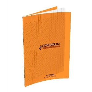 Cahier POLYPRO orange de 32 pages. Grands carreaux - Séyès. Dimensions : 170 x 220 mm (petit format). Reliure agrafée.Grammage : 90 g/m². Couleur de la couverture :orange. Couverture translucide en Polypropylène (PP). Pas besoin de protéger le cahier.