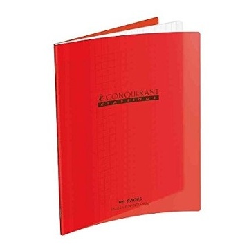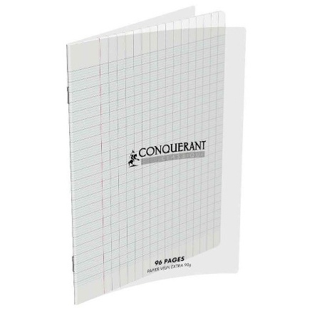 Cahier conquérent - 48 feuilles / 96 pages - Format: A4 (210 x 297 mm)- Matière de la couverture : Polypropylène (Polypro) - Réglure: Grands carreaux Seyès avec marges - Poids : 90 g/m2