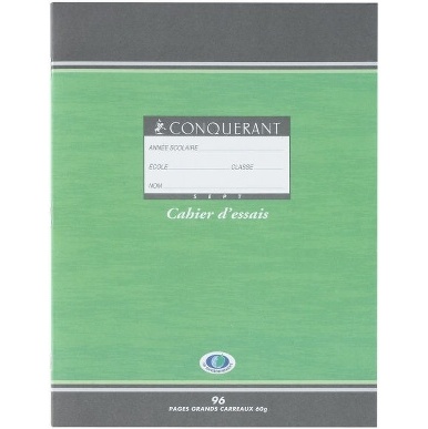 cahier reliure piqûre avec Petits carreaux - Nombres de pages : 96 pages - Dimensions : 210*297 mm (grand format) - Marque : Conquérant