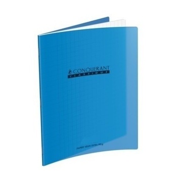 Cahier polypro - grands carreaux - Marque : Conquéreent - Seyes - Dos agraphé - Dimensions : 24 x 32 cm - 48 pages - Grammage : 90 g/m² - Couleur : Bleu