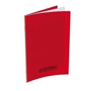 Cahier POLYPRO rouge de 32 pages. Grands carreaux - Séyès. Dimensions : 170 x 220 mm (petit format). Reliure agrafée.Grammage : 90 g/m². Couleur de la couverture :rouge. Couverture translucide en Polypropylène (PP). Pas besoin de protéger le cahier.