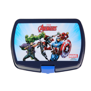 Pour une petite pause gourmande, faites le choix des Avengers ! Cette lunbox Avengers Marvel bleue en plastique gardera le goûter de votre enfant sans problèmes jusqu'au 4 heures, et plus tard encore. Elle mesure 17,3 cm de long, 13,3 cm de large et 5,5 cm de haut, pour un poids de 80 grammes. Très pratique, elle pourra être glissée facilement dans le sac ou le cartable de votre enfant pour conserver son goûter en toute sécurité. Les Avengers seront de la partie lors de la pause gourmande de votre enfant avec cette lunchbox Avengers bleue.