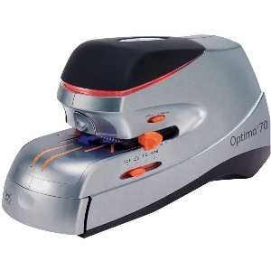La Rexel Optima 70 est une agrafeuse électrique robuste garantissant une agrafage propre et précis jusqu'à 70 feuilles Utilisée avec des agrafes Optima, elle garantit un agrafage à plat sans enrayage qui réduit le volume des feuilles agrafées. Dune profondeur de gorge de 37mm, elle est dotée d'un guide lumineux de placement de l'agrafe et d'un indicateur LED du niveau d'agrafes. Fournie avec 500 agrafes Optima HD70 et un cordon secteur.
