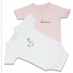 Bodies manches courtes 2 pièces, princesse et signe, couleurs : blanc, rose.