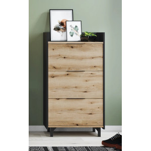 Style industriel - Jusqu'à 18 paires de chaussures - Idéal dans une entrée, vous pourrez ranger toutes vos chaussures dans un meuble au design industriel très tendance - Rangez jusqu'à 18 paires de chaussures dans ce meuble au style industriel - Détails dimensions : Tiroir : H. 34.5 x L. 56.2 cm - Capacité : jusqu'à 6 paires de chaussures par tiroir soit 18 paires de chaussures - 3 tiroirs - Meuble sans fond - Poignées en plastique.