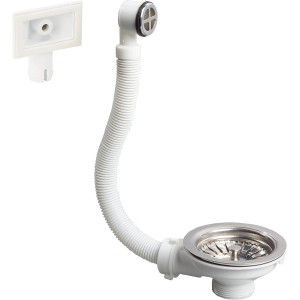 Vidage complet pour évier Wirquin 30719885 avec trop plein rectangulaire - Diamètre : 50mm - Poids : 54 g - Dimensions : 24 x 14 x 7 cm - Marque : Wirquin - Couleur : Blanc - Type : Siphon à tasse, set d'écoulement - Matériaux : Acier inoxydable, polypropylène (PP) - Étanchéité : Oui, avec bande d'étanchéité - Grille incluse : Oui - Utilisation : Intérieur, pour lavabos, vasques, éviers de cuisine - Raccord lave-vaisselle : Non - Fixation : Matériel fourni.