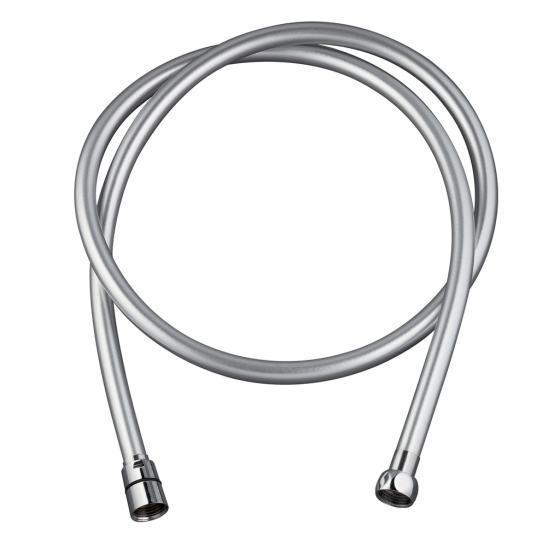 Flexible pvc "silver tiwst" d'1,50 mètres de la marque WIRQUIN. Flexible certifié ACS en PVC lisse - Couleur : Gris - Anti-torsion - Écrou de robinetterie en laiton chromé - Écrou de douchette en laiton chromé.