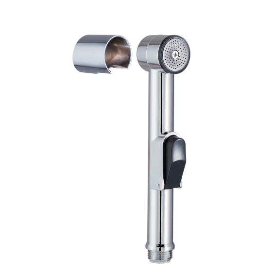 Douchette WC shattaf chromée de la marque WIRQUIN - Douchette certifiée ACS de 1 jet : jet tonique - Stop-jet sur le manche - Diamètre de Ø3 cm. Mise en eau par action sur le poussoir - Support mural - Consommation d'eau : 5 L/mn.