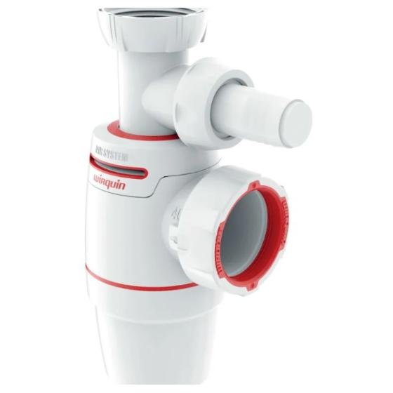 Siphon d'évier réglable avec prise machine à laver Siphon NF. Réglable en hauteur de 166 à 211 mm. Débit : 58 L/mn. Garde d'eau 50 mm. Entrée 1"1/2. Sortie Ø40 mm à visser. Pipette prise machine à laver.