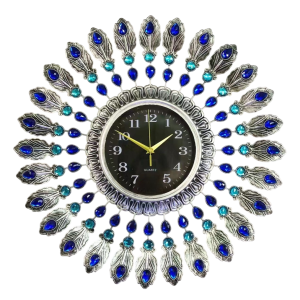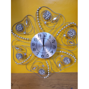 Ajoutez une touche d’élégance et de sophistication à votre intérieur avec cette horloge murale design unique en son genre. Alliant esthétisme moderne et matériaux de qualité, cette horloge est bien plus qu’un simple instrument de mesure du temps : c’est une véritable pièce décorative. Style floral raffiné : Motif en forme de fleur, avec des pétales ornés de strass scintillants et de perles blanches disposées en spirale, évoquant la grâce et le luxe. Finition argentée brillante : Le cadran en métal brossé circulaire, aux chiffres noirs lisibles, s’harmonise parfaitement avec les courbes métalliques argentées du cadre. Détails décoratifs : Incrustations de pierres brillantes façon cristal et perles nacrées pour un effet glamour et chic.