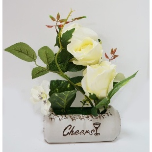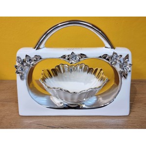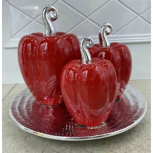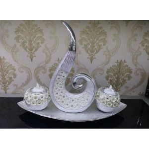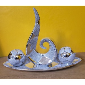 Décoration en céramique 1 plateau + 3 décorations. Coloris : argenté.