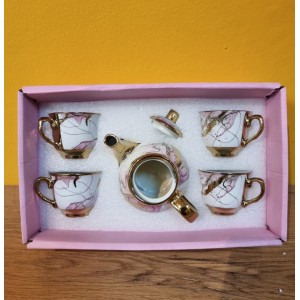 Tasses et théière avec couvercle. Ce service est composé de 6 pièces. Coloris : multicolore.