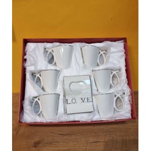Set de tasses Love, avec soucoupes, 12 pièces, coloris : blanc.