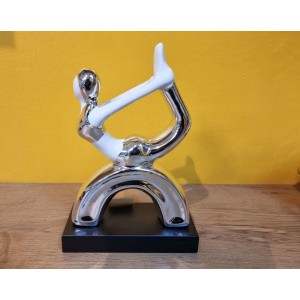 Objet décoratif couple romantique en céramique - Dimensions : 18x26cm, coloris : bleu et doré - Réf : 054.