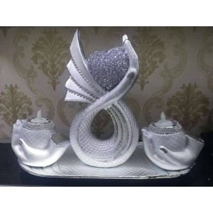 Décoration cœur ailé avec strass et diamant fantaisie - Coloris argenté, dimensions : 18x26cm - Réf : 664.