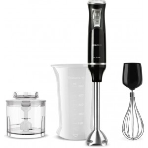 Mixeur plongeant Power Titan Black doté d'une puissance de 1200 watts - Offre des mélanges fins et homogènes grâce à ses 4 feuilles revêtues en titane noir - Présente un format XL avec un pied extralong - Intègre une cloche avec un design anti-éclaboussures qui permet une utilisation plus propre.