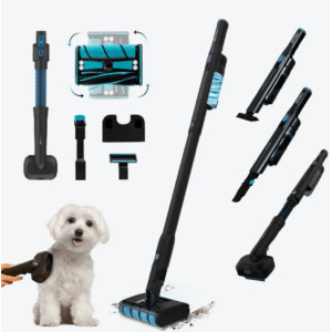 Aspirateur balai sans fil ultra puissant proposé avec une base auto vidante, un manuel d'instructions, un accessoire 2 en 1 et un chargeur - Intègre la technologie Parallel Cyclonic System qui sépare les particules par force centrifuge - Offre une autonomie allant jusqu'à 70 minutes grâce à sa batterie lithium-ion de 2200 mAh - Doté d'une brosse mixte qui gratte les saletés les plus tenaces - Embarque un moteur numérique d'une puissance de 450 W et 30 kPA - Permet d'atteindre les angles et le dessous des meubles grâce à son accessoire 2 en 1 - Propose un usage économique avec changement de sac seulement 4 fois par an.