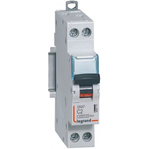 Disjoncteur Legrand 406773 DNX3 4500 - vis/vis - U+N 230V 10A - 4,5kA - Profondeur d'encastrement : 44 mm - Caractéristique de déclenchement (type/courbe) : C - Nombre de pôles (total) : 2 - Nombre de pôles protégés : 1 - Calibre/courant nominal assigné (In) : 10 A - Conditionnement : 1 unité.