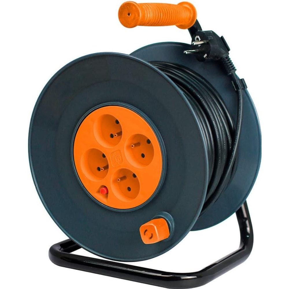 Enrouleur HO5VV F 4 prises 3G1,5 40 de mètres + coupe circuit.