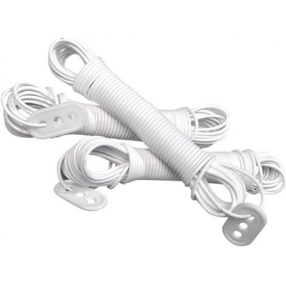 Fils d'étendage à linge - lot de 3, idéal pour étendre votre linge. En matière plastifiée pour une meilleure résistance aux épreuves du temps. Les fils d'étendage sont livrés avec tendeurs en plastique. Informations techniques. Longueur : 10 mètres. Quantité : 3 fils d'étendage. Fil d'étendage avec armature métallique. Différents coloris selon arrivages.