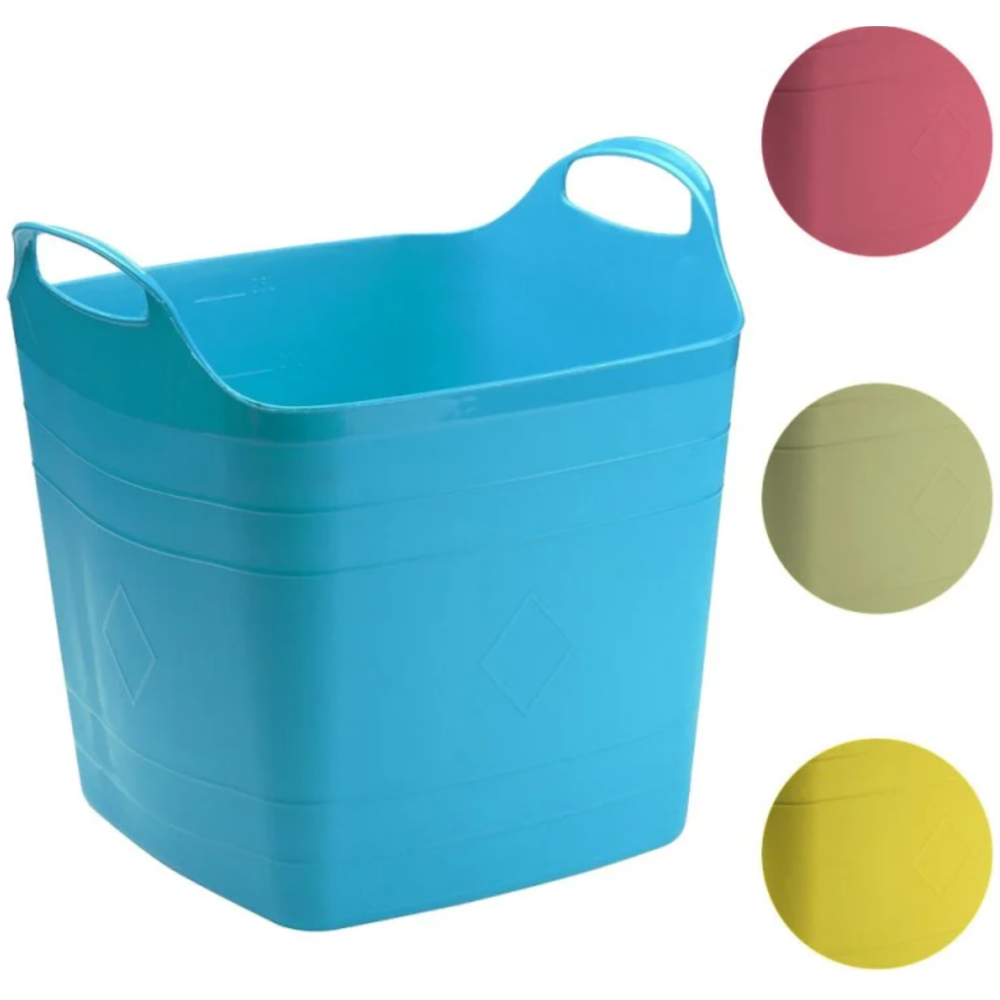 Seau flexible - panier à linge souple 27 litres. Ce seau flexible deviendra vite indispensable pour toutes vos tâches quotidiennes : panier à linge sale, rangement d'objets, tri des déchets (carton, verre, bouteilles vides, etc.), transport des courses, ramassage des feuilles mortes, ... Pratiques avec ses 2 anses souples et confortables il peut aussi bien vous servir de panier ou corbeille à linge comme de panier de salle de bain, de poubelle pour le tri sélectif du verre, du carton ou du plastique ou encore de panier de rangement ! Cette corbeille est à la fois souple, ultra résistante et très légère !