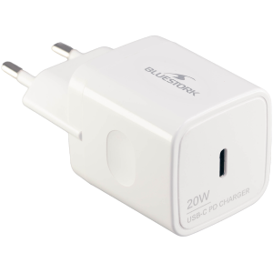 Chargeur universel Bluestork blanc équipé d’un port USB-C- Propose une recharge sans risque de surtension pour les PC portables, smartphones et tablettes grâce à sa protection contre la surchauffe et les courts-circuits - Fonctionne avec une puissance de 20 W - Garantit une recharge efficace et sécurisée grâce à la charge rapide USB-C power delivery 3.0 et la PFC active intégrées - Présente un gabarit minimaliste qui permet de le glisser facilement dans une trousse ou un sac et l’emporter lors des déplacements quotidiens - Améliore le quotidien en proposant une recharge pratique des appareils sans poser un souci de câble.