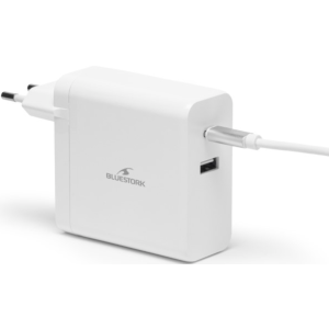 Chargeur Bluestork doté d’une puissance de charge de 65 watts - Structuré avec 1 port USB Type-C et 1 port USB Type-A Femelle - Conçu pour recharger efficacement un large éventail d’appareils smartphones, tablettes, ordinateurs portables grâce à sa technologie de charge rapide Power Delivery - Intègre une conception moderne avec GaN (nitrure de gallium) qui optimise la puissance tout en réduisant l’encombrement - Offre une protection active contre les surtensions, assurant à la fois performance et sécurité - Affiche un design soigné en blanc qui s’intègre aussi bien à la maison qu’à un environnement professionnel.