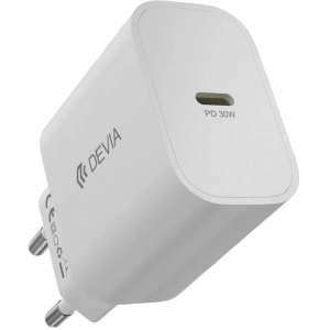 Adaptateur secteur USB-C Devia blanc recommandé pour recharger de manière efficace et sécurisée divers appareils comme iPhone, iPad et smartphones Android compatibles à une vitesse record tout en chauffant moins qu'un adaptateur classique - Utilise la technologie au nitrure de gallium (GaN) pour offrir une charge ultra-rapide dans un format incroyablement compact - Délivre une puissance de charge de 30 W parfaite pour recharger rapidement les derniers iPhone (jusqu'à 50% en moins de 30 minutes) - Intégré d’une puce intelligente qui identifie automatiquement l'appareil branché pour lui fournir la tension exacte nécessaire, garantissant une charge optimale pour les smartphones Samsung, Xiaomi, Google Pixel et bien d'autres.