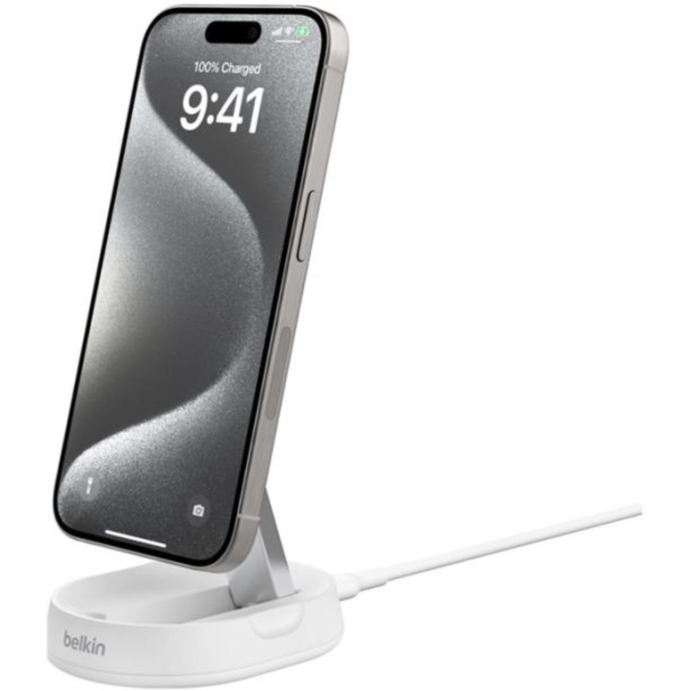 Belkin BoostCharge Pro - Support de chargement sans fil - magnétique + adaptateur secteur - 15 Watt - blanc