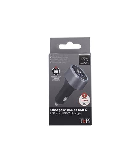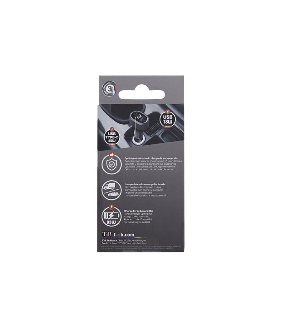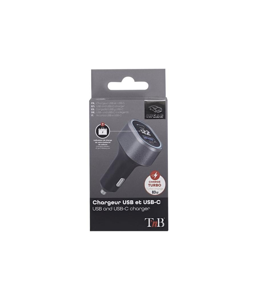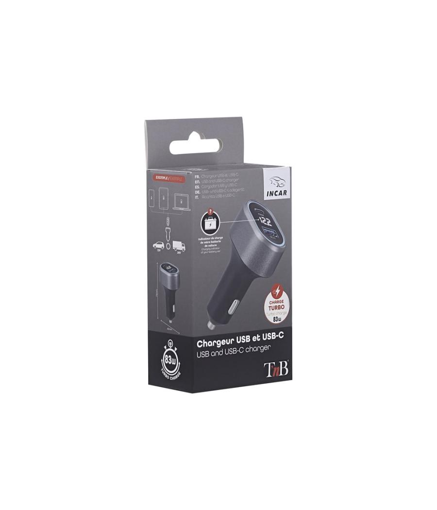 T'nB - Adaptateur d'alimentation pour voiture - 83 Watt - PD, Quick Charge 3.0 - 2 connecteurs de sortie (USB, 24 pin USB-C)