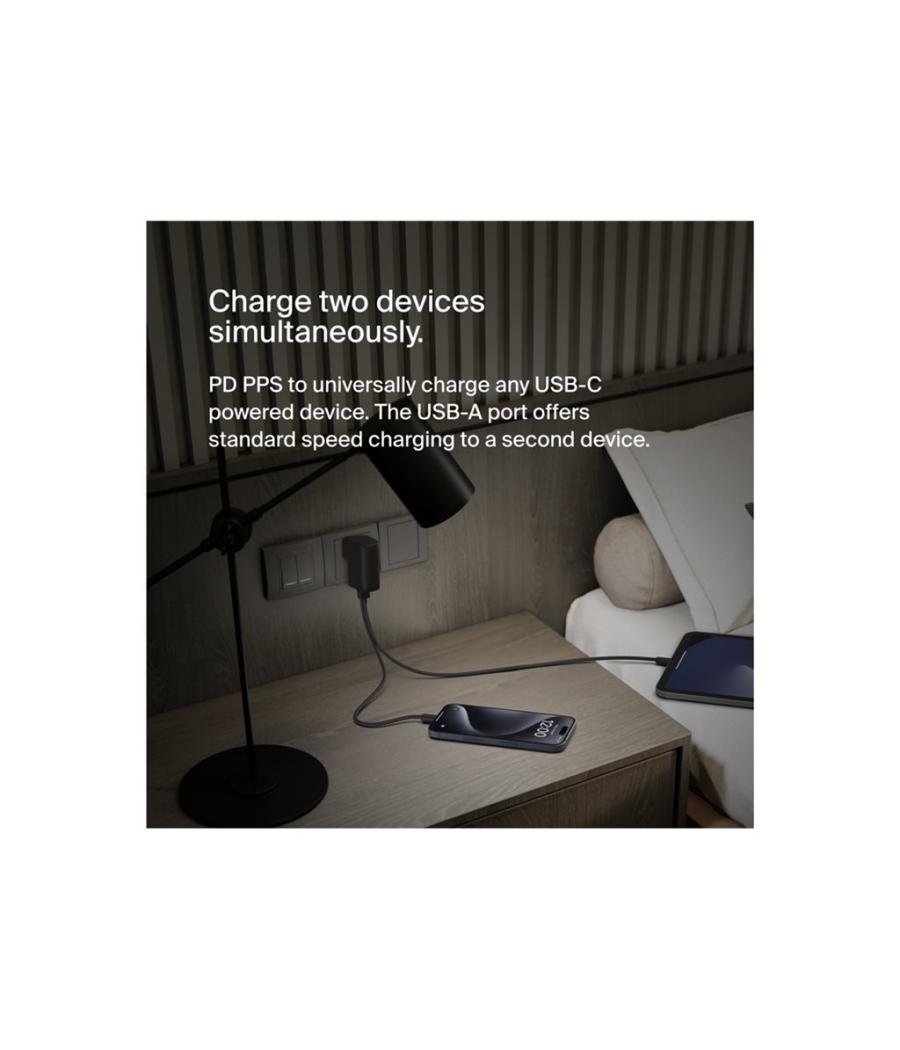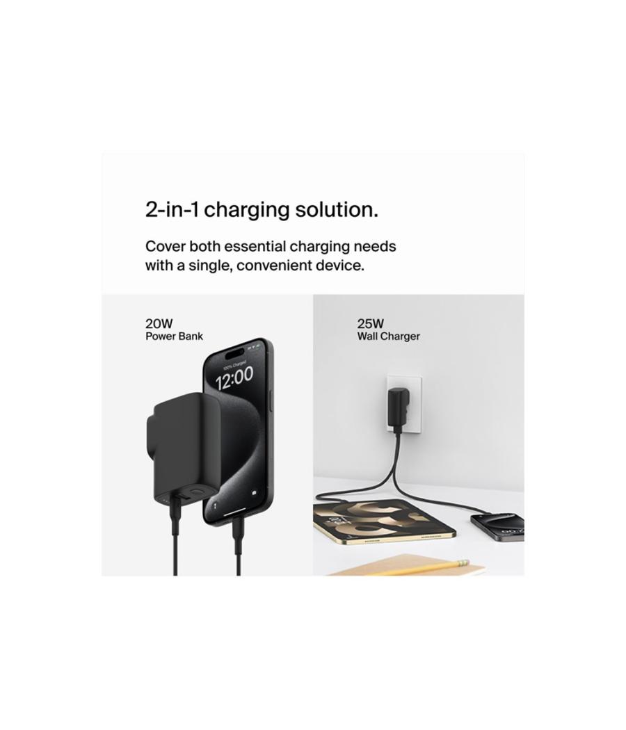 Belkin BOOST CHARGE - Banque d'alimentation/adaptateur secteur - 5000 mAh - 25 Watt - Fast Charge, PD 3.0 - 2 connecteurs de sortie (USB, 24 pin USB-C) - noir