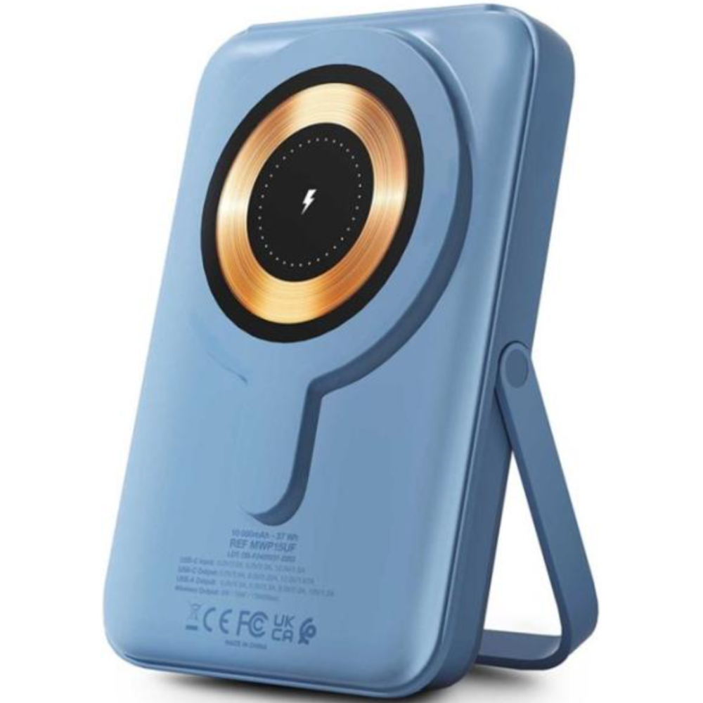 Urban Factory MAGNEE POWER - Banque d'alimentation sans fil - magnetic, Magsafe Compatible - 10000 mAh - 22.5 Watt - 4.5 A - 2 connecteurs de sortie (24 pin USB-C, USB type A) - sur le c?ble : USB-C - allure blue