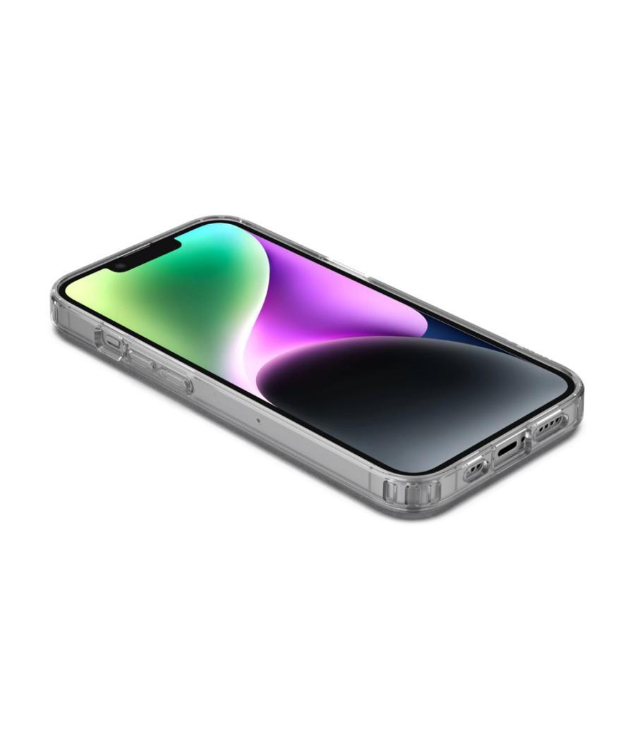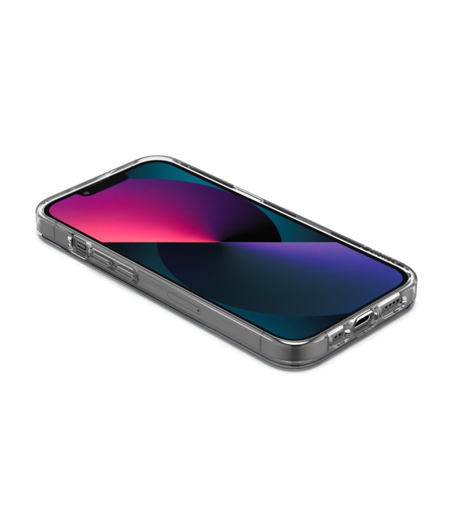Les matériaux transparents de la coque sont anti-UV afin d'éviter le jaunissement et la décoloration au fil du temps. Les rebords légèrement surélevés autour de l'écran offrent une meilleure protection contre les rayures lorsque votre iPhone est face vers le bas.