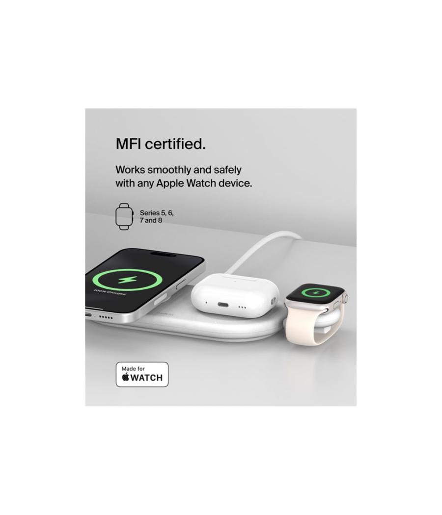 | Le socle de recharge sans fil BoostCharge de Belkin offre une expérience de recharge transparente aux utilisateurs de smartwatches. Conçu dans un souci de commodité et de responsabilité environnementale, il présente un design compact et portable fabriqué à partir de 75 % de plastique post-consommation recyclé. Non seulement il est facile à transporter, mais il contribue également aux efforts de développement durable. Grâce à la technologie de charge rapide, votre appareil est rapidement mis sous tension, ce qui réduit les temps d'attente. De plus, sa certification MFi garantit la compatibilité avec votre smartwatch, offrant ainsi une solution de charge sûre et efficace. Le BoostCharge de Belkin est l'accessoire idéal pour les utilisateurs de smartwatches à la recherche d'une solution de recharge fiable, écologique et efficace. | |