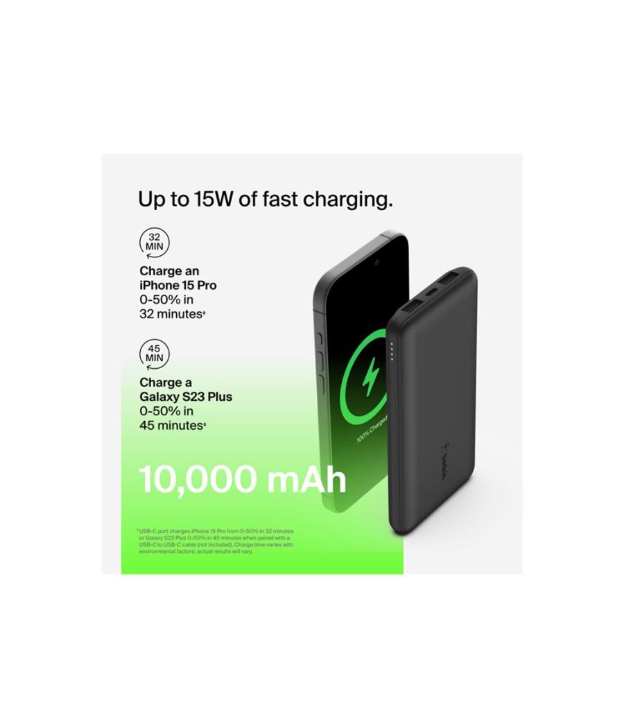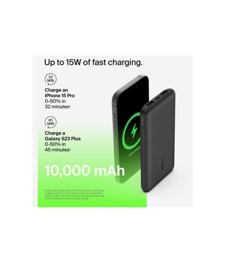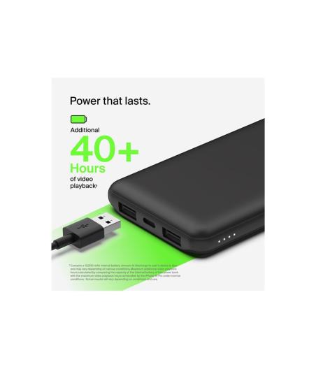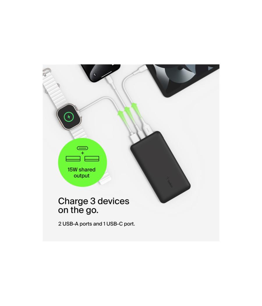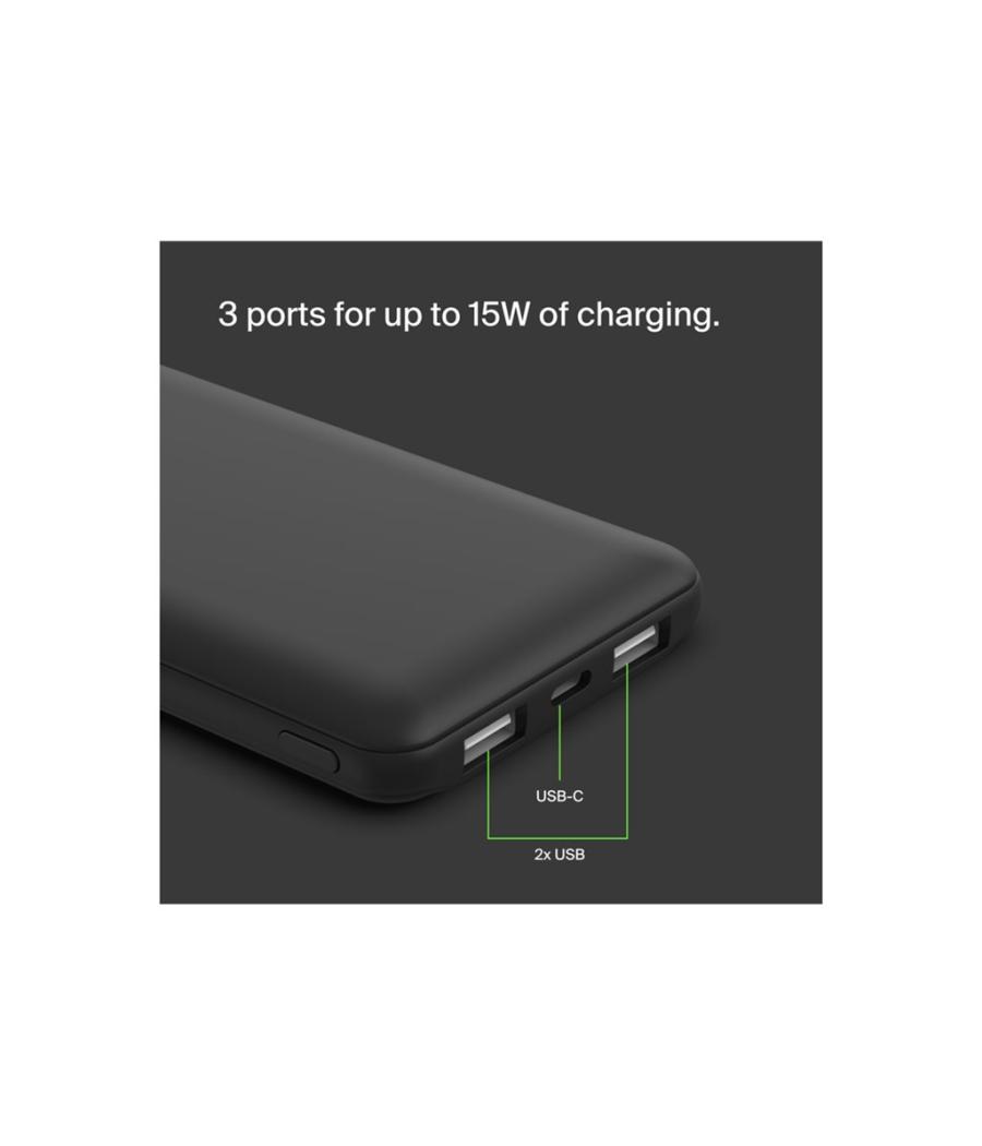 Belkin BOOST CHARGE - Banque d'alimentation - 10000 mAh - 15 Watt - 3 connecteurs de sortie (2 x USB, 24 pin USB-C) - noir