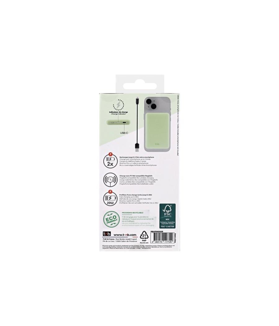 T'nB - Banque d'alimentation sans fil - compatible avec MagSafe - Li-pol - 5000 mAh - 20 Watt - 3 A - Turbo Fast Charge (24 pin USB-C) - vert
