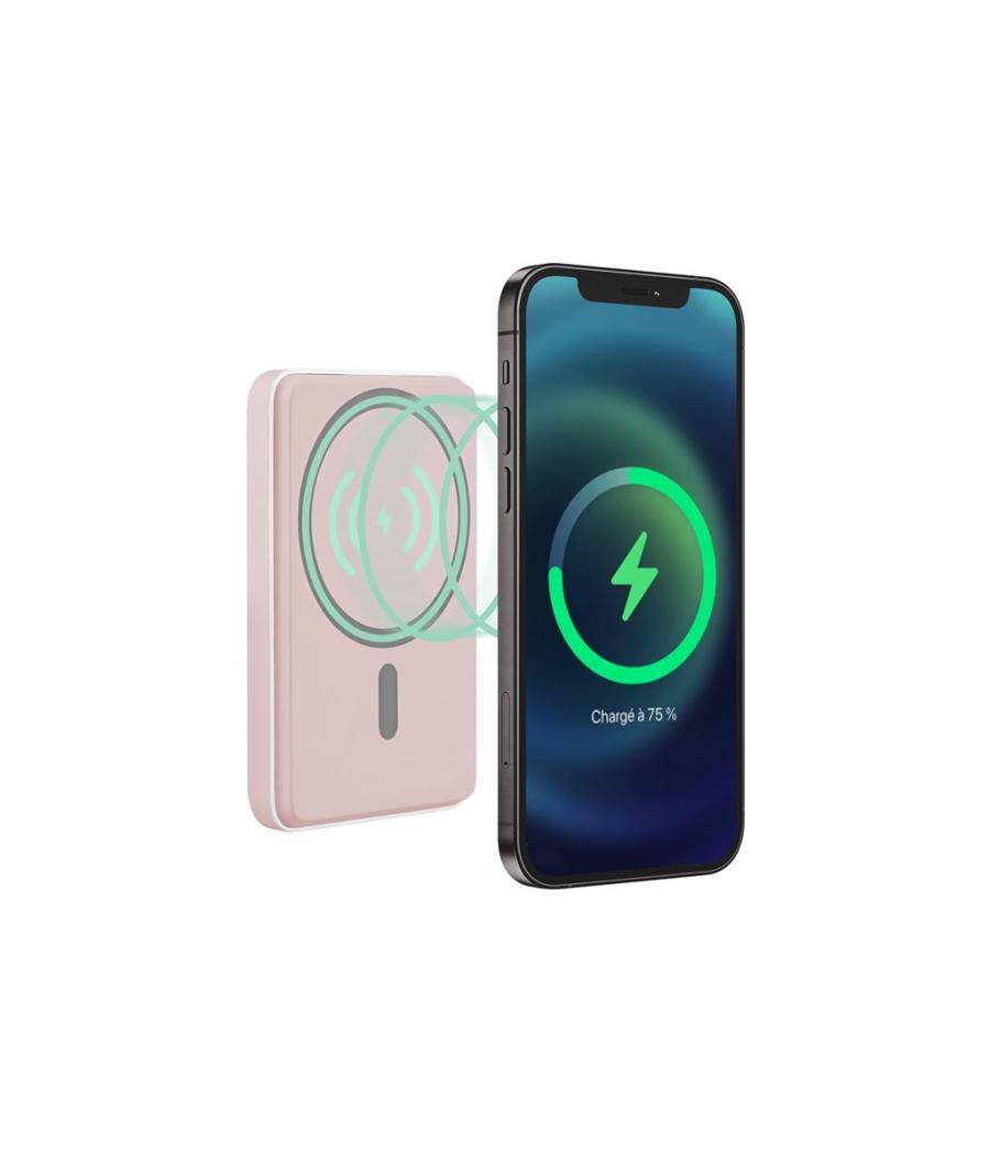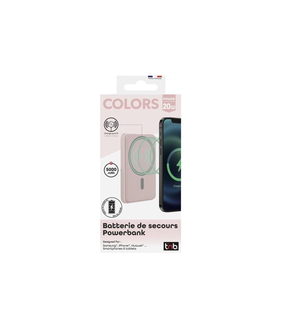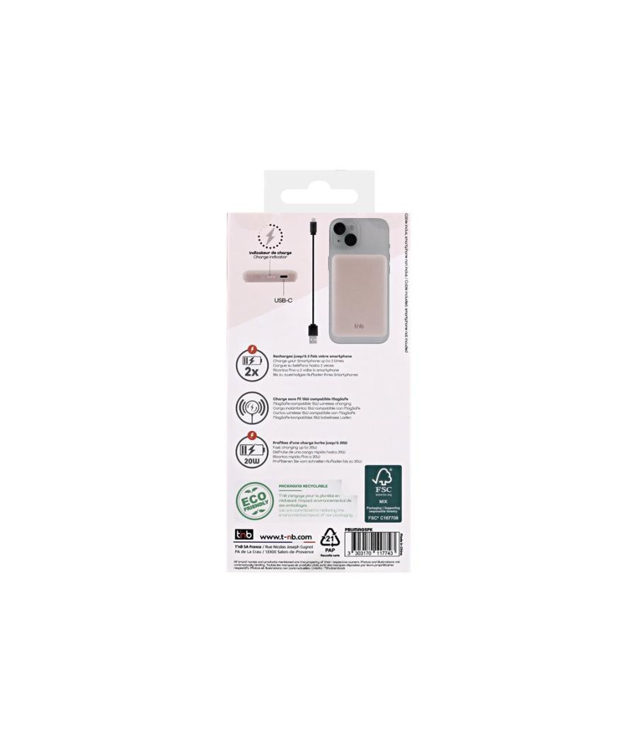 T'nB - Banque d'alimentation sans fil - compatible avec MagSafe - Li-pol - 5000 mAh - 20 Watt - 3 A - Turbo Fast Charge (24 pin USB-C) - rose