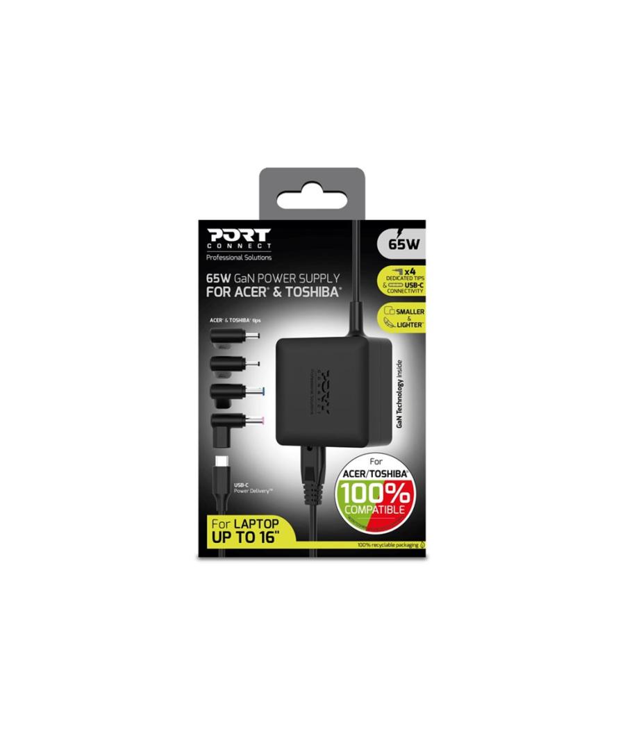 PORT Connect - Adaptateur alimentation USB-C - GaN2 - CA 100-240 V - 65 Watt - Europe