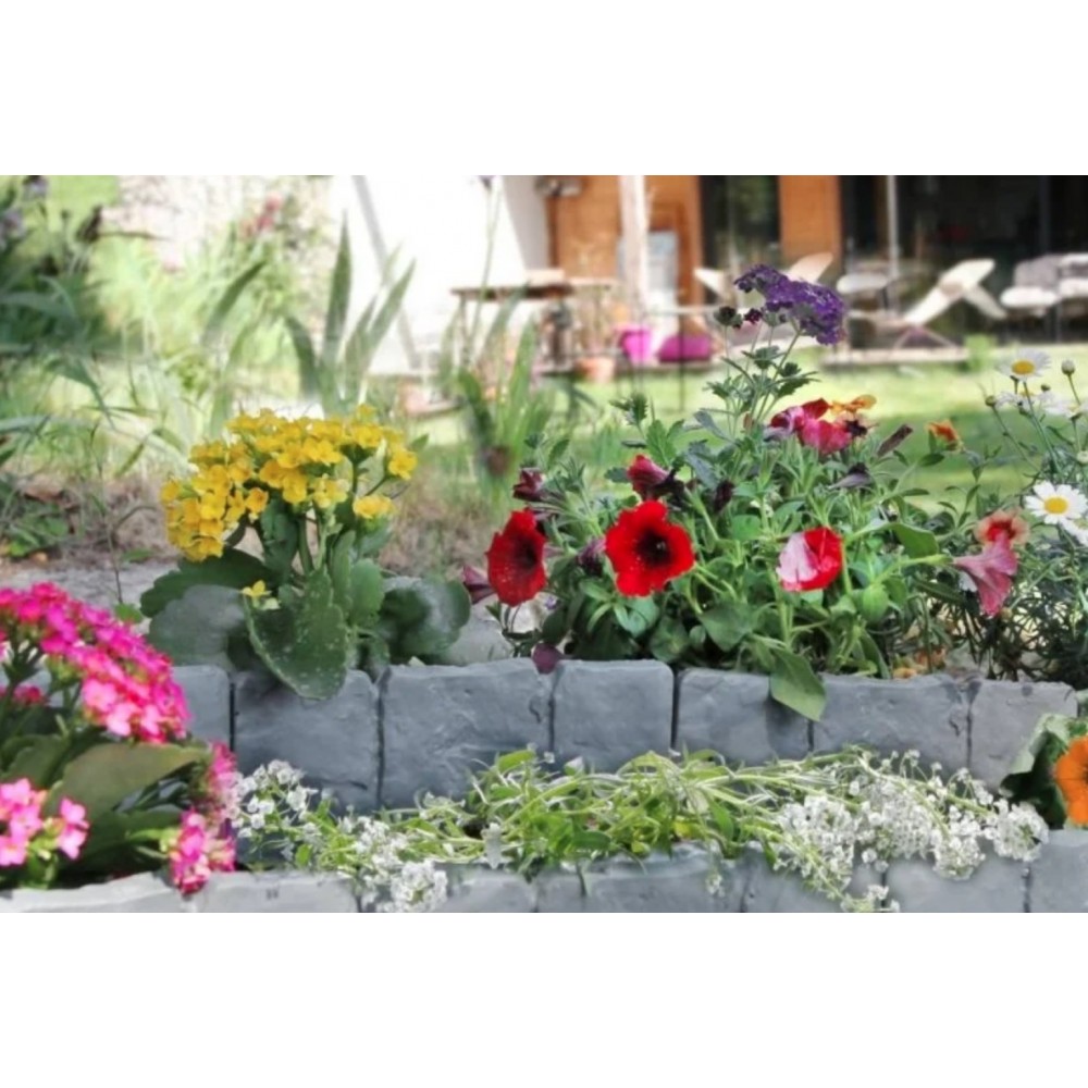 Bordures de jardin imitation pierre / ardoise - grise - vendu par 10. Délimitez parfaitement vos massifs de fleurs grâce à ce lot de 10 bordures de jardin imitation pierre. Ces bordurettes permettent de mettre en valeur vos fleurs et autres éléments de votre jardin. Avec les bordures de jardin, vous pourrez créer des formes droites ou courbées. Le montage est très simple puisque les bordures s'emboitent les unes aux autres.