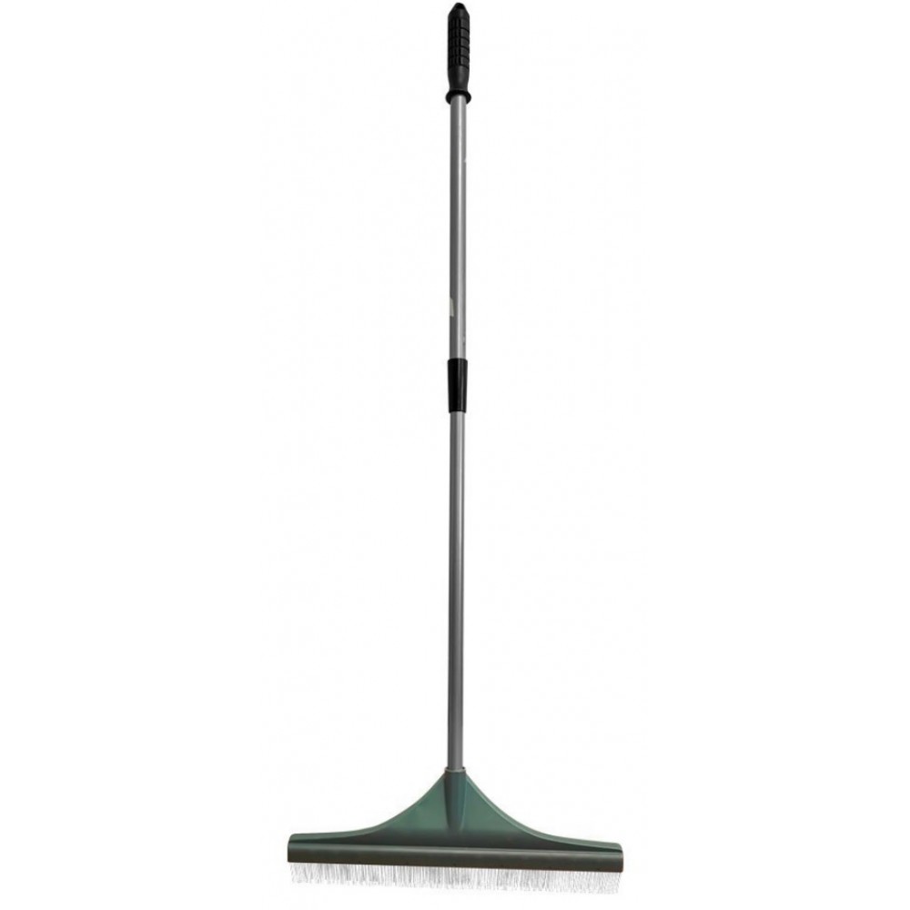 Idéal pour nettoyer votre gazon artificiel et raviver ses fibres. Indispensable, ce balai râteau vous permettra d’avoir un extérieur toujours impeccable. Pour un gazon artificiel propre et esthétique. Dimensions : • manche télescopique : de 80 à 131 cm • tête : l. 45,5 x h. 12,5 cm • brosse : l. 44,5 x h. 3,5 cm. Matière : tête plastique, manche en acier et brosse en nylon. Poids : 783 g. Coloris : vert et noir. Manche télescopique : tournez à droite pour débloquer et à gauche pour bloquer. La tête peut être enlevée par une simple pression sur un bouton.