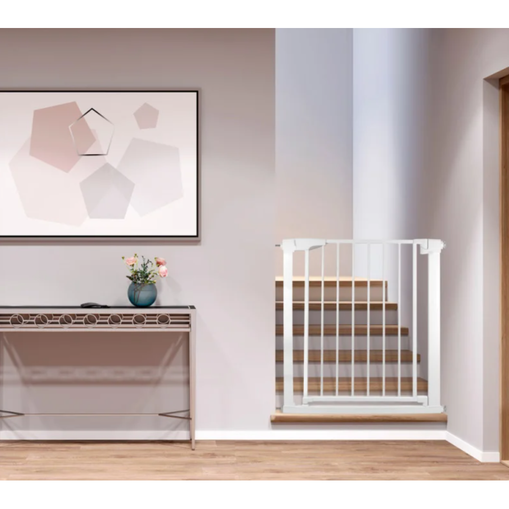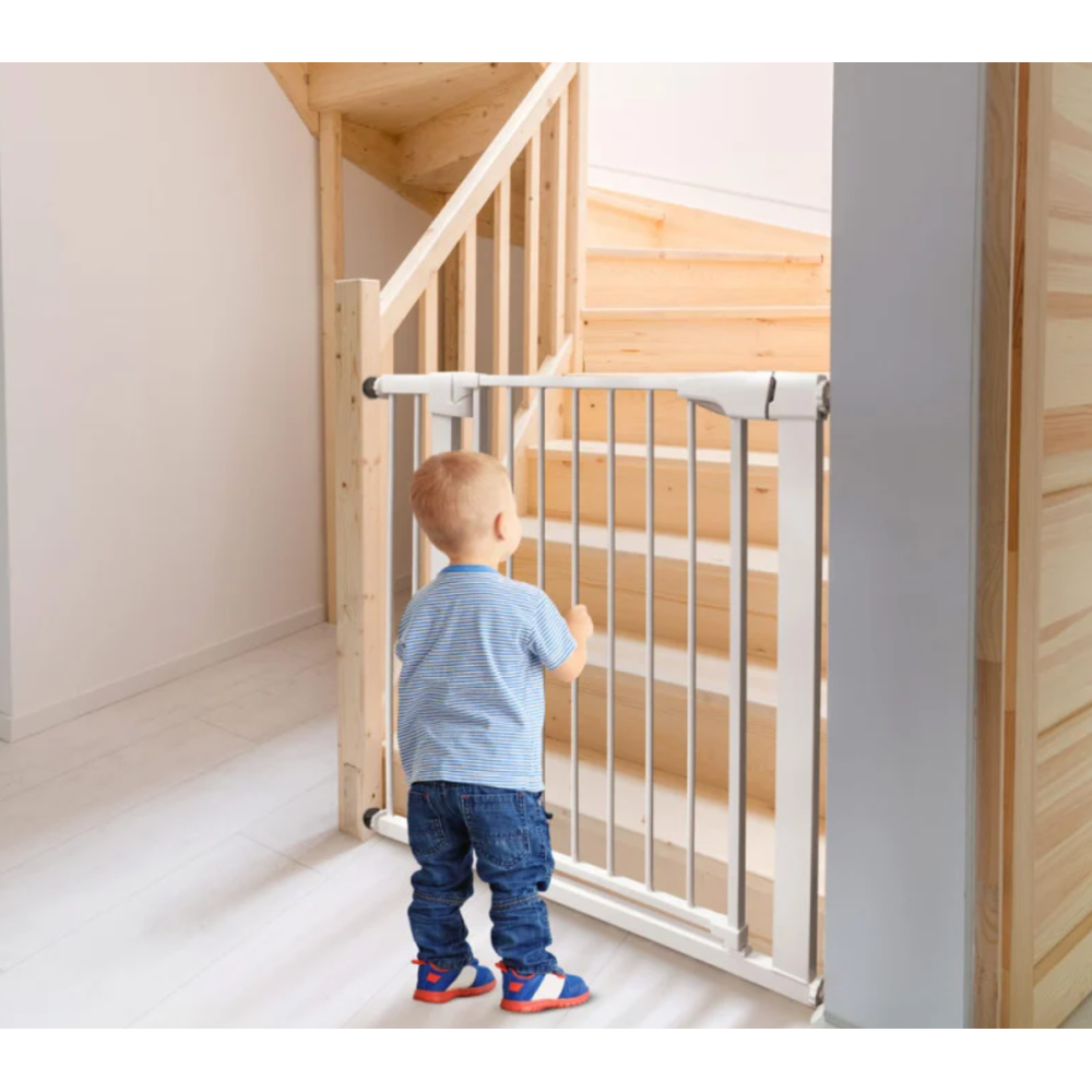 Sécurisez vos espaces : sa construction robuste en métal et sa section de passage extra-large vous permettra de bloquer l'accès à certaines pièces ou l'accès aux escaliers - Elle est dotée d'un système d'ouverture à double verrouillage, ce qui assure un sécurité optimale pour vos enfants - Elle répond également aux normes de sécurité européennes EN71-1,-2,-3 et EN 1930: 2011 - Prête à être installée, vous n'aurez besoin que de 10 minutes pour fixer cette barrière et sécuriser vos espaces - Sa fixation par pression vous permettra une installation sans perçage et sera très facile à déplacer et retirer - Détails dimensions : Écartement entre les barreaux : ... cm, Ouverture : L. 60 cm, Tube supérieur : 1.6 x 1.6 cm, Tube inférieur : 2 x 3 cm, Tube latéral : 5 x 2 cm, Tube barrière : Ø 1 cm - Double verrou - Kit de fixation inclus (sans perçage) - Normes : EN71-1,-2,-3 et EN 1930: 2011.