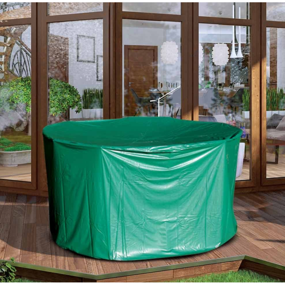 Protégez votre mobilier des intempéries - Étanche - Protégez efficacement votre mobilier de jardin grâce à cette housse de couleur verte en PVC ultra résistant - Idéale pour protéger des intempéries et éviter ainsi de nettoyer votre table de jardin dès qu'elle séjourne en extérieur - Caractéristiques techniques : Grammage/Qualité : 215 g/m² - Résiste au soleil, protège des intempéries et des saletés - Étanche, indéchirable et lavable - Un ourlet fait le tour de la housse en bas, une corde passe dans cet ourlet et ressort par 2 œillets placés l’un à côté de l’autre.