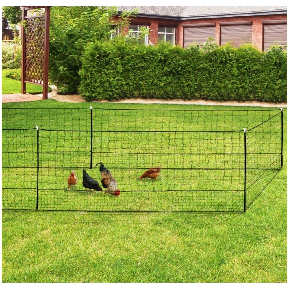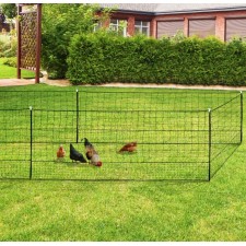Créez un espace en plein air dédié à vos poules et vos coqs afin qu'elles puissent gambader et se dégourdir les pattes ! Ce filet et son kit complet d'accessoires de montage vous permettront de moduler votre enclos comme bon vous semble et également en fonction de la place dont vous disposez. Une porte à ouverture en "éventail" très pratique permet d'entrer et de sortir facilement sans qu'une poule maligne ne puisse se faufiler. Des mailles carrées de 4.5 cm sur le bas et de 10 cm sur le haut de la clôture composent ce filet. Une solution sûre et efficace pour encadrer vos poules tout en leur offrant de l'espace ! Noir.