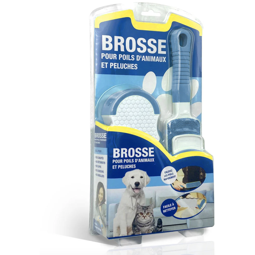 Fini les poils ! - Enlevez les poils de vos animaux domestiques rapidement de vos canapés, coussins, vêtements et tapis - Caractéristiques techniques : Détails dimensions : Grande brosse : L. 32 x l. 8 x E. 4,6 cm - Petite brosse : L. 13,5 x l. 6,5 x E. 2,8cm - Inclus : une brosse double face avec son socle autonettoyant (surface : 15 cm) et une petite brosse au format voyage (surface : 7,5 cm) - Le socle de la brosse permet de la nettoyer en un seul geste : insérez et retirez, c'est nettoyé ! - La base du socle peut se retirer pour pouvoir le vider (enlever les poils récoltés).